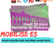 En grève et en manifestation Jeudi 26 mars - 12h30 devant le Rectorat de Poitiers, pour exiger des moyens ambitieux [...]
